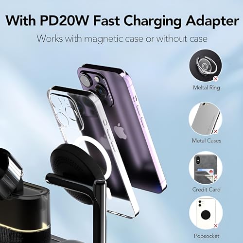 XVersion - قاعدة شاحن لاسلكي سريع 5 في 1 من اكس فيريشن، 15 واط كيو اي متعدد الاجهزة لاجهزة ابل ايفون 15/14/13/12/ايربودز/اي ووتش ضمان لمدة عام الشركة المصنعة - اسود