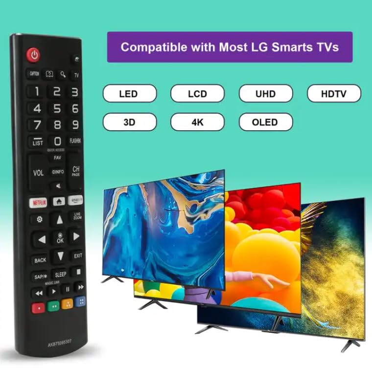 - توافق التلفزيون: يتوافق جهاز التحكم عن بعد المطور البديل العالمي AKB75095307 لتلفزيونات ال جي الذكية LCD LED HDTV UHD OLED 3D 4K.