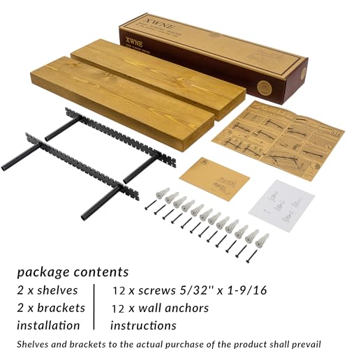 XWNE - مجموعة أرفف عائمة من الخشب الطبيعي، أرفف ديكور حائط للحمام وغرفة المعيشة وغرفة النوم والمطبخ، أرفف مدعومة كليا ومصنوعة يدويا من اكس دبليو ان اي، لون خشب البلوط - 60 × 15 × 3.8 سم، 2 قطعة