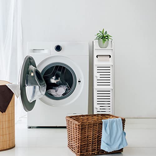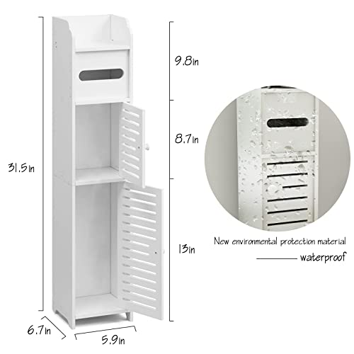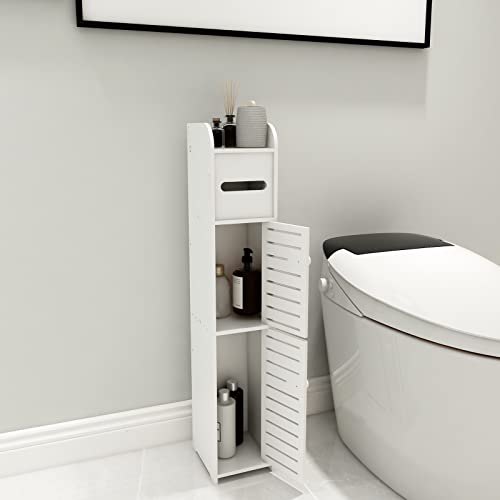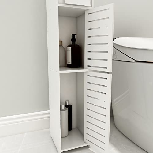 XXXFLOWER - XXXFLOWER Small Bathroom Storage Cabinet with 2 Doors and 2 Shelves Bathroom Organizer, 4 Tier Design Toilet Paper Storage Stand for Small Space and Corner(White)