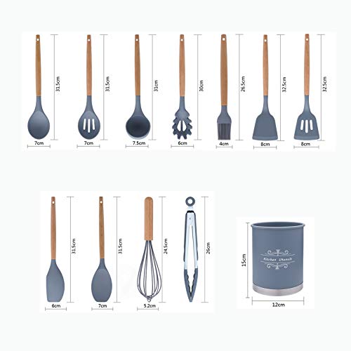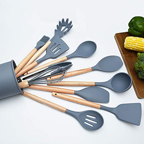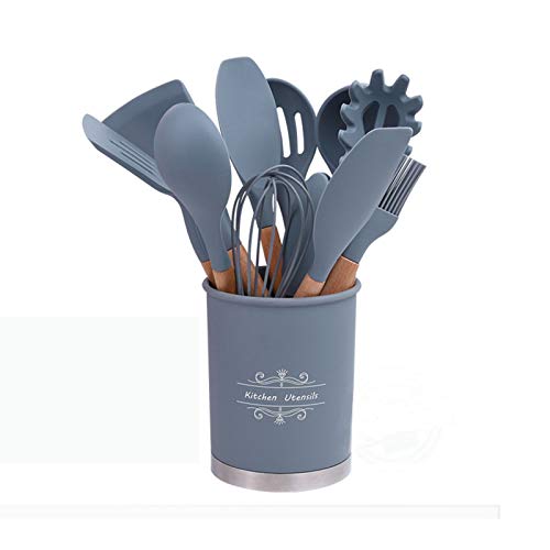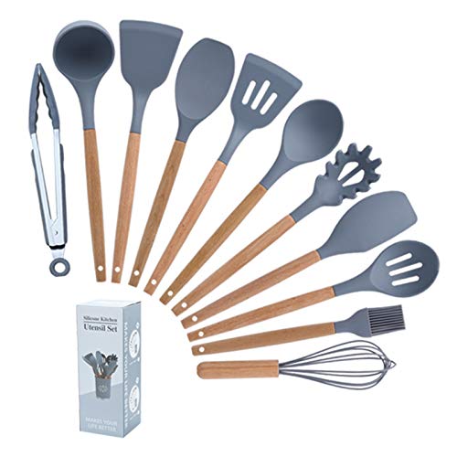 Generic - XY 11 Pcs Silicone Kitchen Utensils,Silicone Utensil Set,Safe Food Grade Silicone with Premium Wood Handles, Non Stick Silicone Kitchenware, Heat Resistant Cookware. (Grey)