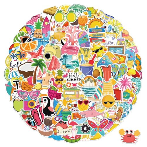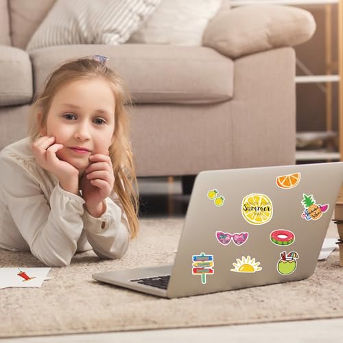- HAWAII STICKERS: Each pack of summer stickers contains 100 unique pieces featuring various designs such as the sun, watermelon, coconut tree, swimming ring, slippers and more. No duplicates and no random delivery—you'll receive every tropical stickers shown in the picture. These summer stickers for kids will add vibrancy to your life, and I hope they bring you joy and delight.