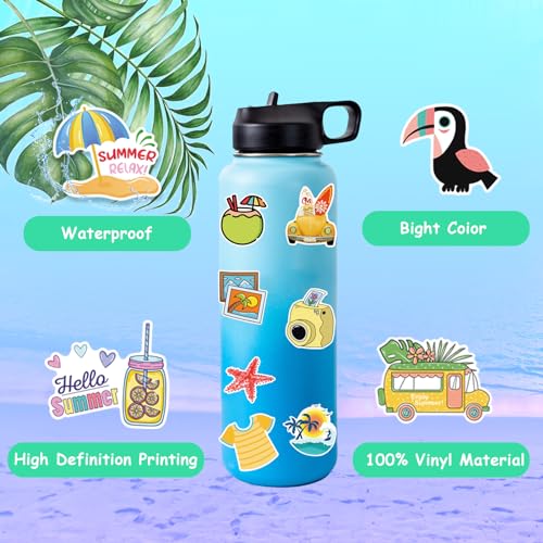 - SUPERIOR QUALITY: Our happy summer stickers is meticulously crafted from premium vinyl PVC, guaranteeing exceptional quality. These summer water bottle stickers come in various sizes, ranging from 2 inches to 3 inches, allowing for versatile use. Their waterproof and sun-proof properties ensure they withstand the elements, with colors that resist fading over time. With these tropical stickers at your disposal, you can unleash your creativity.