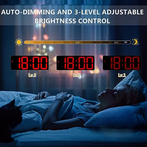 - Adjustable brightness, 3-level manual adjustment and automatic adjustment. You can set the time of automatic mode (night mode) according to your work and rest rules. Whether it is day or night, you can clearly see the time, even at night, there will be no dazzling lights, and it can even be used as a small night light, guard your night. (Note that in bright light, numbers will not be displayed clearly.) Long press LIGTH/SNOOZE for 5s, the screen will light off.