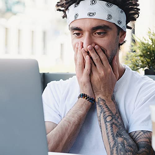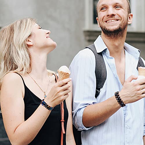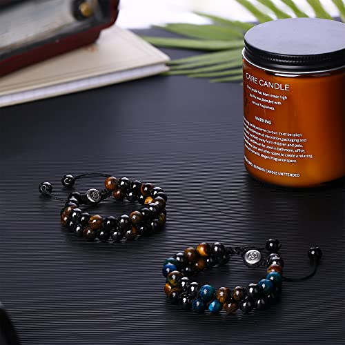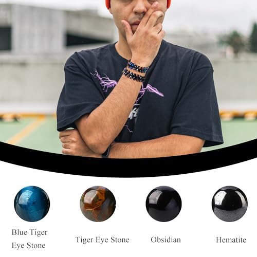 YADOCA - YADOCA 2Pcs Mens Bracelet 8mm Bead Bracelets Blue Tiger Eye Obsidian Natural Stone Beads Triple Protection Bracelets for Men Women Christmas Valentine's Day