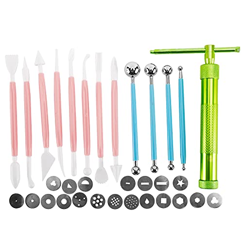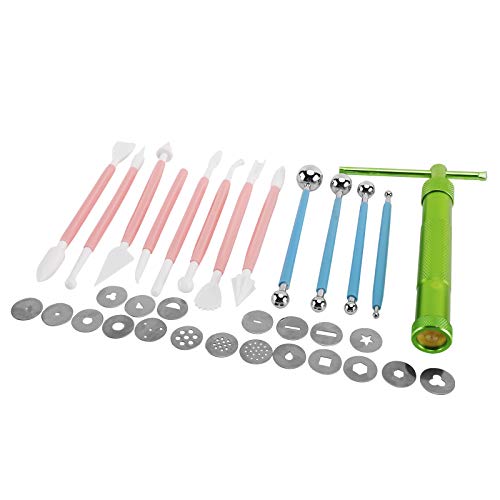 YaeGarden - 33 قطعة من لوازم تزيين الكيك والفوندان اداة تشكيل السكر مسدس بثق الصلصال مع 20 طرف 4 قطع التنقيط الكروية و8 ادوات والحرف البلاستيكية