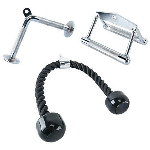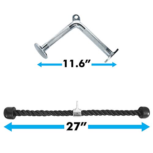 - 【Full Packages Includes】: 1 x Tricep Rope, 1 x Double D Handle and 1 x V-Shaped Press Down Bar. Universal design fit most cable system on the market.