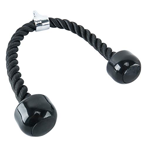 - 【Tricep Rope】: Made of Thick and Reliable Braided Nylon, Tricep Ropes can last a lifetime under most intense workouts. Universal size fit most hands. Chrome Plated Steel Swivel Shackle provides smooth, fluid motion and Sturdy Rubber Stoppers prevent slipping to make sure there isn't any interrupted workouts. Dimensions: 27” Long x 1” Thick (Rope) x 0.56” Diameter Hole. Weight Capacity: Up to 880 lbs.