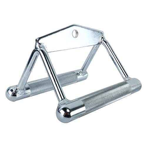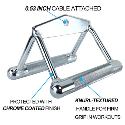 - 【Double D Handle】: Constructed of Solid Steel covered by Polished Chrome Finish to provide an appealing look & prevent rust and corrosion. Knurled handles provide a stronger, firmer grip & prevent slipping during sweaty workouts. Dimensions: 7.5” x 6.5” x 5.5” (LxWxH) and 0.53” hole. Weight Capacity: Up to 880 lbs.