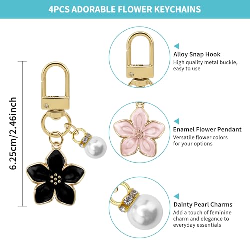 YaeYur - Cute Flower Keychains for Women Floral Bag Charms Key Chain Aesthetic Keychain Accessories Purse Charms for Handbags