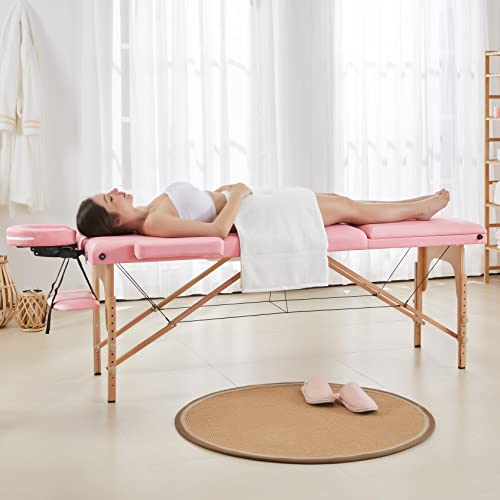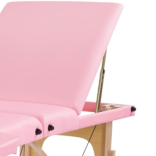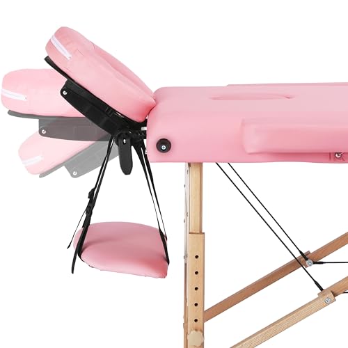 Yaheetech - Yaheetech 3-Zone Massage Table, Portable Massage Bench, Height-Adjustable Massage Table with Headrest and Removable Armrests for Physiotherapy, Light Pink