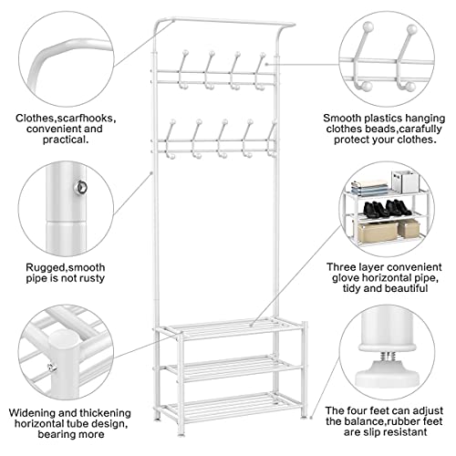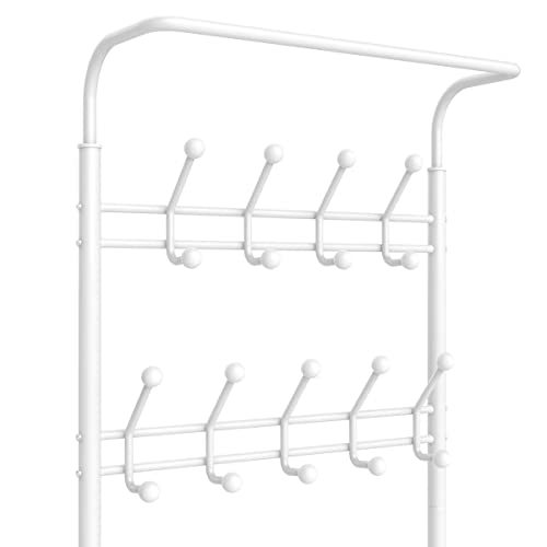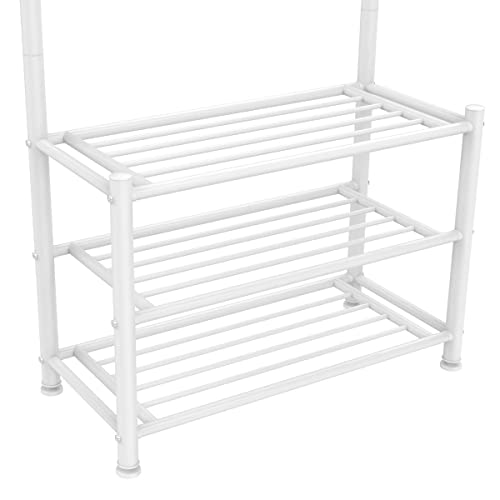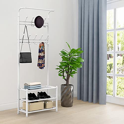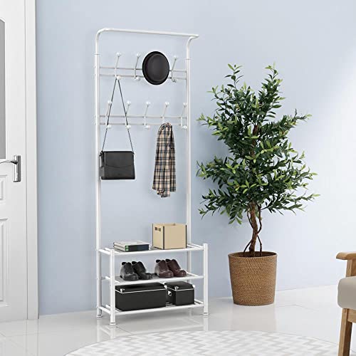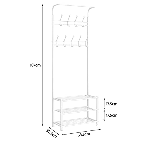 Yaheetech - Yaheetech Coat Rack Stand with Shoe Rack and 18 Hooks, Free Standing Hall Tree with Clothes Hanging Rod, Metal Frame, 187cm Height, for Hallway/Entryway/Living Room,White