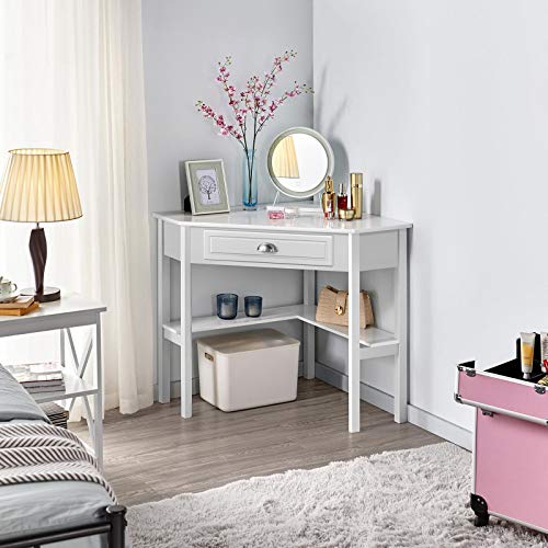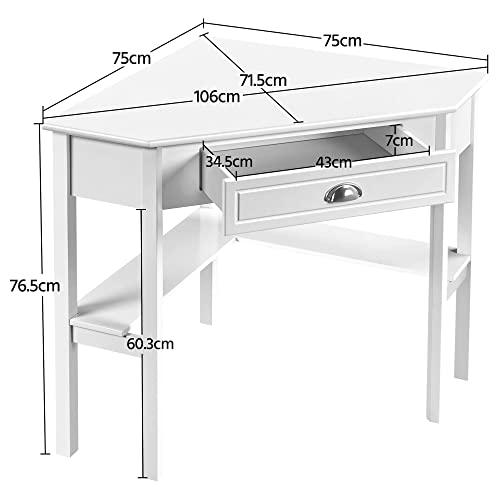 Yaheetech - Yaheetech Corner Desk, Space Saving Computer Desk with Drawer and Shelves, Corner Desk for Small Space, 106 × 71.5 × 77 cm, White