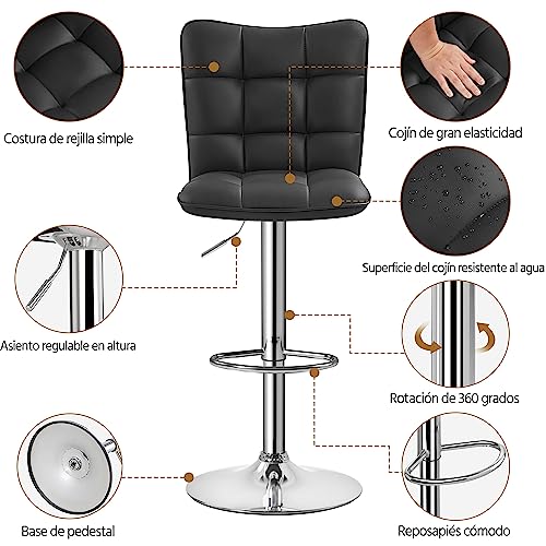 Yaheetech - Yaheetech Set of 2 Bar Stool Height Adjustable 92.5-113 cm Metal Industrial Stool Kitchen Chair Tasburete Tall for Kitchen Bar Dining Room Black