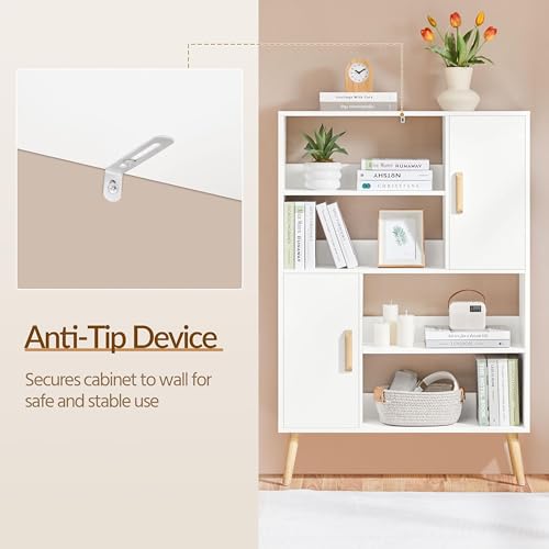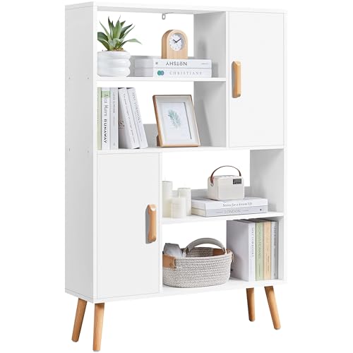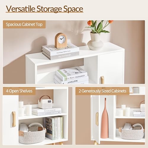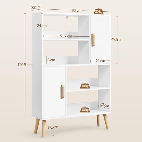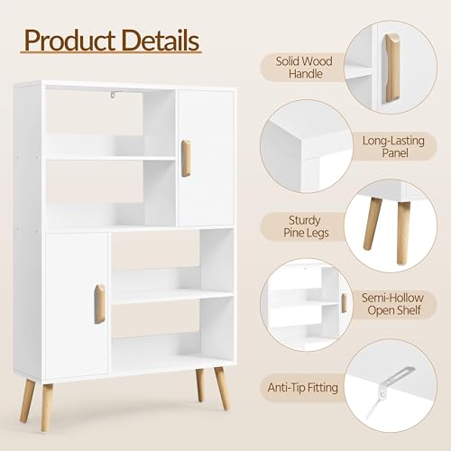 - Elevated on Wood Legs: Raised on four wood legs, this cabinet bookshelf stays stable and lifts the base 17.5 cm off the floor, preventing moisture damage and enabling both cleaning underneath and robot vacuums to pass freely