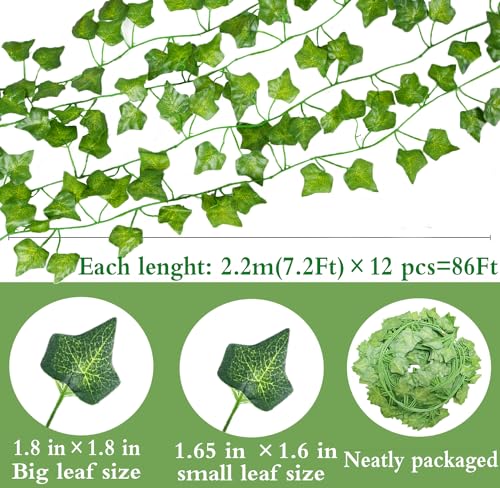YAHUAA - 12 Pack 86Ft Artificial Ivy Garland Fake Plants, Fake Ivy Leaves Greenery Garlands Hanging Plant Vine for Aesthetic Bedroom Garden Party Wedding Wall Room Christmas Décor