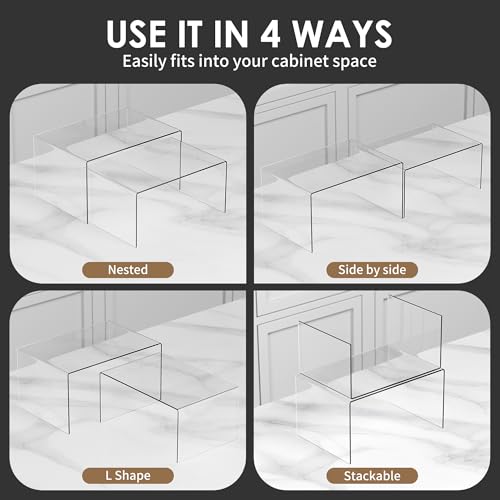 Yakaly - مجموعة رفوف اكريليك مرتفعة شفافة من ياكالي لدواليب المطبخ - منظمات رفوف قابلة للتكديس وغير قابلة للانزلاق، رفوف موفرة للمساحة لعرض الأسطح وتنظيم التوابل، 2 قطعة