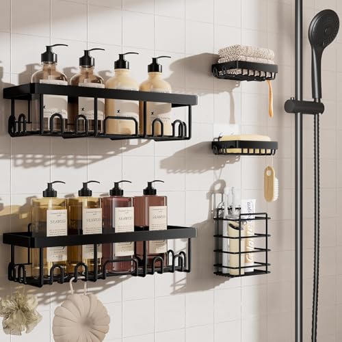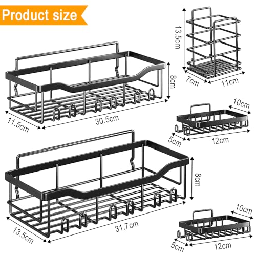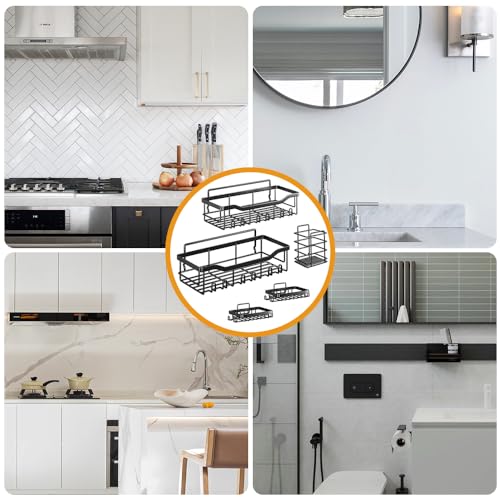 Yakiter - منظم حمام من ياكيتر علبة دش لاصقة بدون ثقب الحمام الستانلس ستيل يثبت على الحائط سعة كبيرة رف للحمام والمطبخ ورف زاوية 5 قطع اسود .