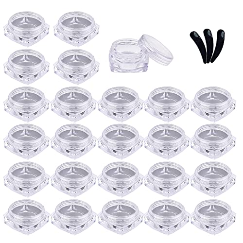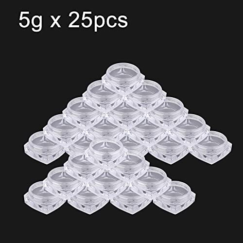 Generic - برطمانات مستحضرات تجميل مربعة للسفر من يالبدوبو، بلاستيكية شفافة مع اغطية شفافة، مناسبة للكريم والعينات والاظافر والمساحيق، ولتخزين المكياج - مجموعة من 25 قطعة تتضمن 3 معالق صغيرة - 5 جرام, شفاف, 5g