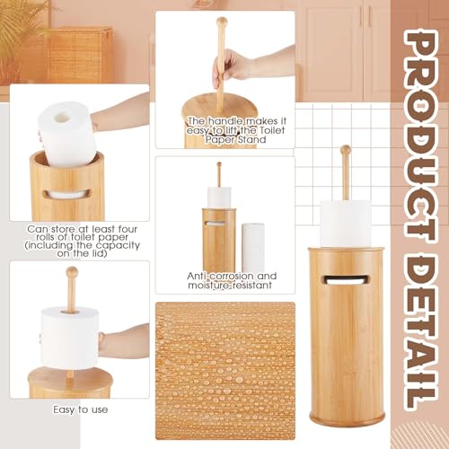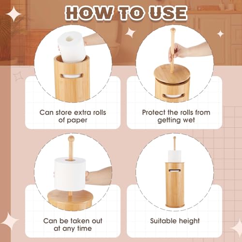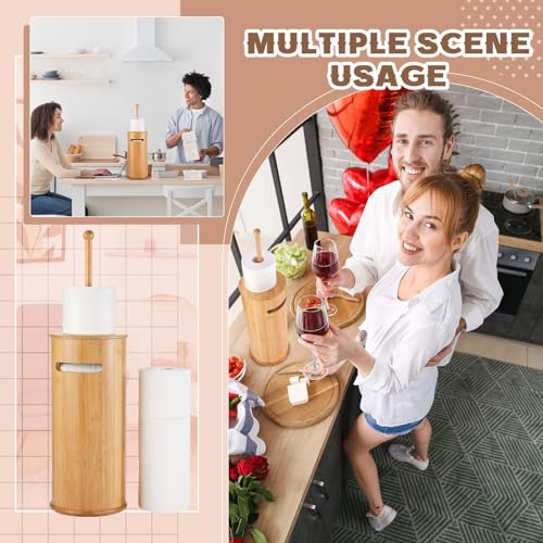 - Multi-functional Design: our package includes 1 bamboo toilet paper holder in a cylindrical design with a pull-tab lid and long matchsticks; Available in 2 assembly options, you can choose matchsticks to ensure smooth rolls of toilet paper, or pull tabs for easy storage of your phone or books; It provides you with diverse arrangement choices to optimize your convenience