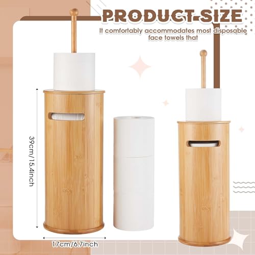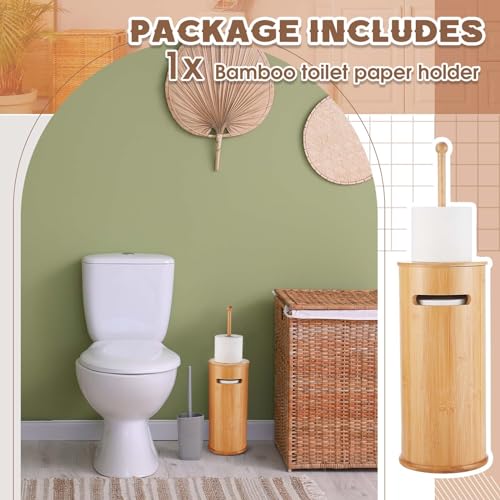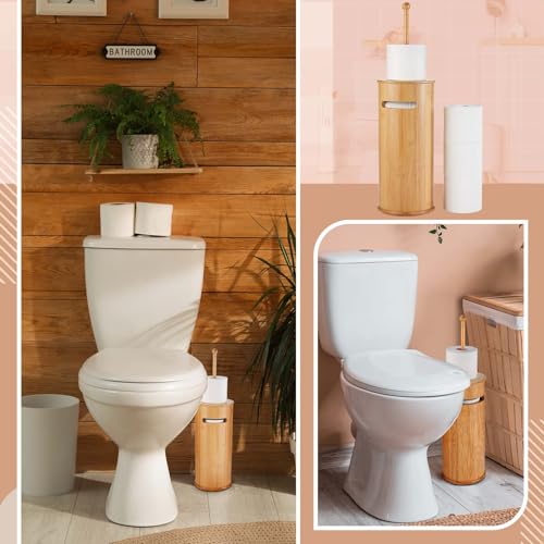 - Materials and Durability: this freestanding toilet paper holder is made of bamboo and wood, ensuring stability while providing safe storage for your toilet paper; Its wooden structure prevents floor corrosion; It matches perfectly with your bathroom decor and blends in elegantly thanks to its wooden tones; It holds up to 3 standard size toilet rolls (not suitable for large rolls), making it a space-saving option; The cover ensures the roll is protected from dust