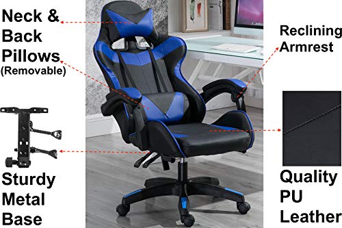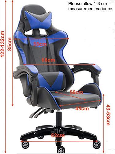 YALLA OFFICE - كرسي ألعاب كمبيوتر للألعاب والمكتب والطلاب مريح لدعم أسفل الظهر وتخفيف الآلم (أسود وأزرق)، 808Blunfr