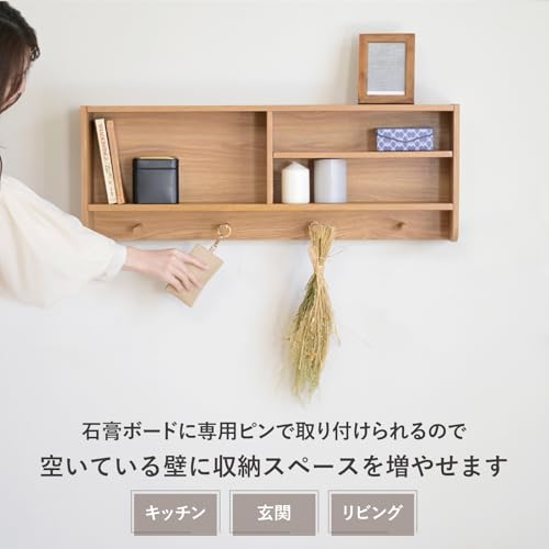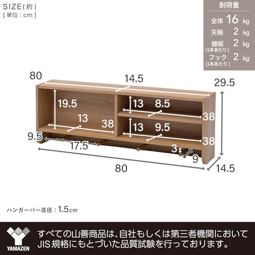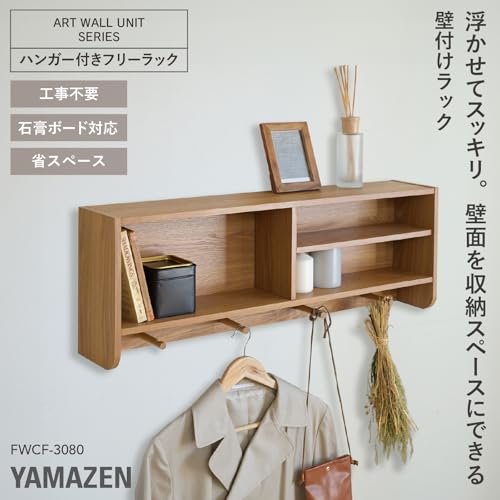 YAMAZEN - واي اي ام اي زد اي ان رف حائط اف دبليو سي اف-3080 (بلوط)، رف حائط مجاني مع شماعة، معلق على الحائط، تخزين المعاطف وخطافات المفاتيح، رف تخزين حائط، رف، عرض 31.5 × عمق 5.7 × ارتفاع 29.5 سم (80 × 14.5 ×