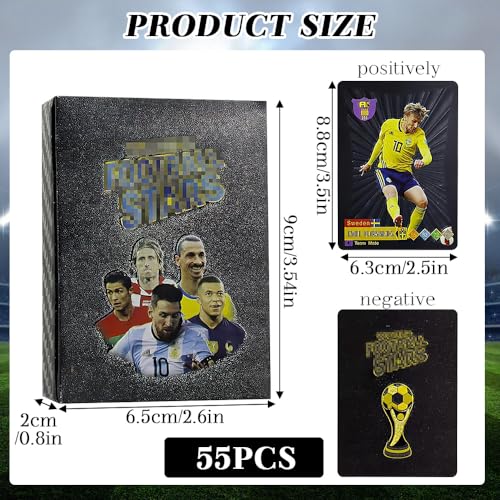 - ⚽【Football Star Cards】You will receive a type of 55 cards, including photos of several football stars. The patterns are beautiful and clear and the colours of the cards are bright and rich. Place football star card in a card folder and let it shine with your other cards.