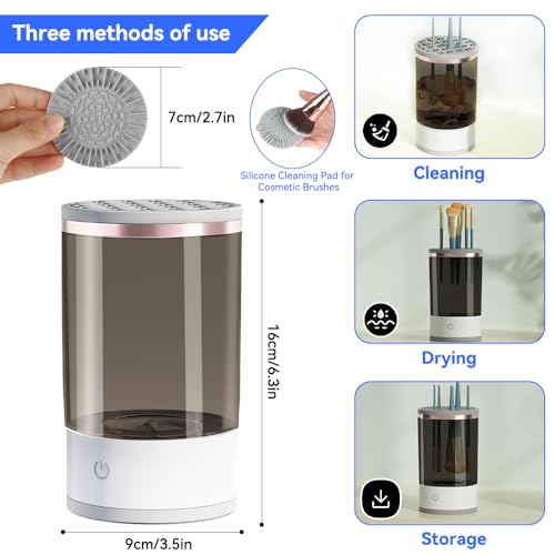 - Efficient cleaning: make-up brush cleaner dryer using sound vibrations, it easily removes all cosmetic residue and dirt from the brushes without damaging the brush, saves time for busy make-up lovers.