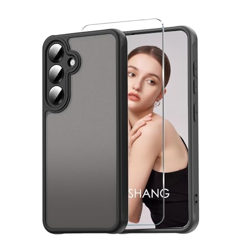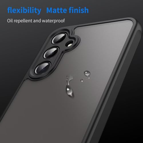 YANJIEER - حافظة حماية غير لامعة من يانجيير ايسونج لهاتف سامسونج جالاكسي S24+، مع حماية للكاميرا وواقي شاشة واحد، حافظة موبايل رفيعة شفافة مقاومة للصدمات، خلفية شفافة من البولي يوريثين الحراري، اسود