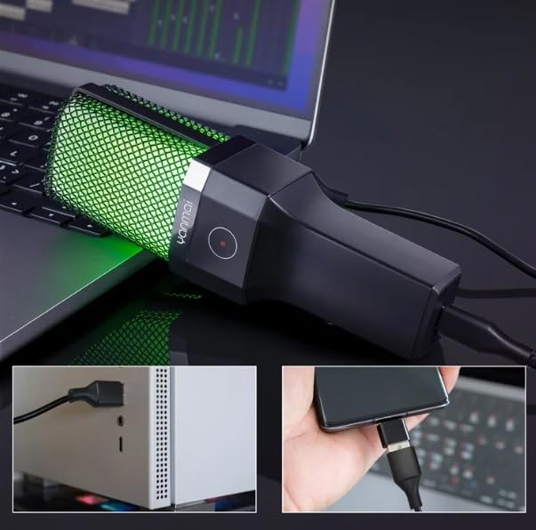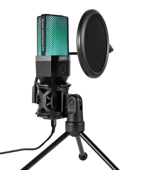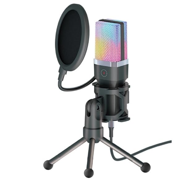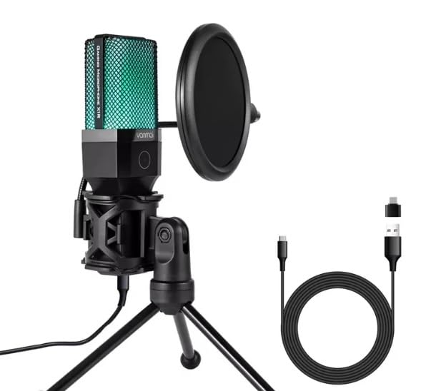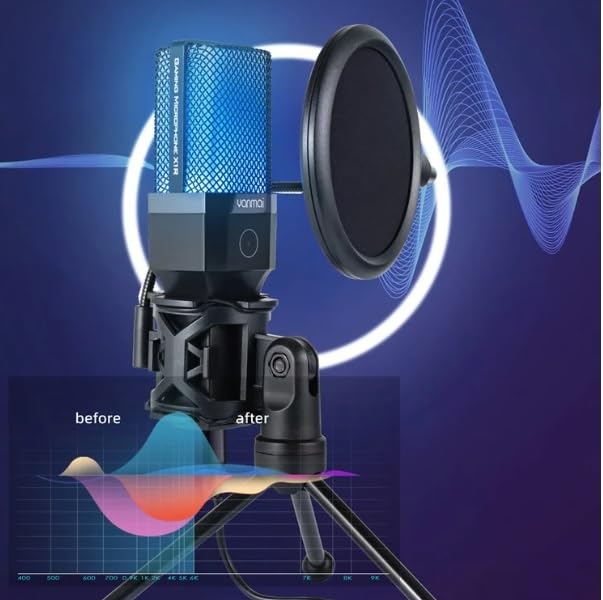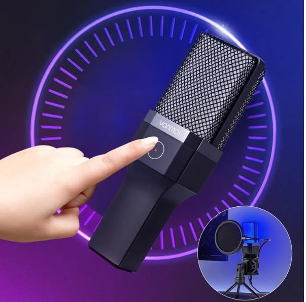 Yanmai - ميكروفون ألعاب X1R بسلك USB وإضاءة ار جي بي مع حامل ثلاثي القوائم ذكي بخاصية إلغاء الضوضاء ومكثف التقاط اتجاهي مركزي للرياضات الإلكترونية مع شبكة لمنع الانفجار من يانماي