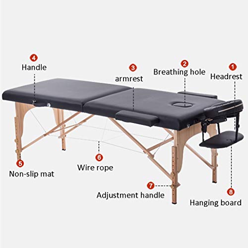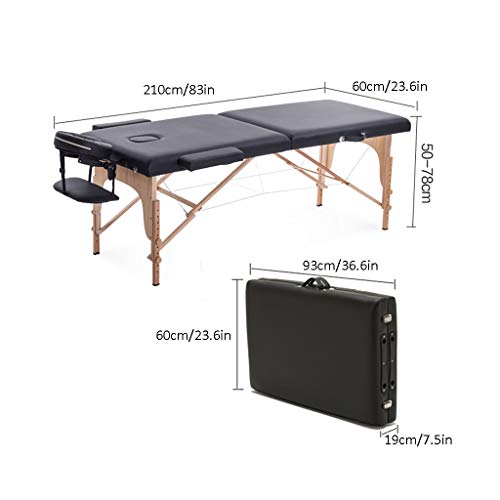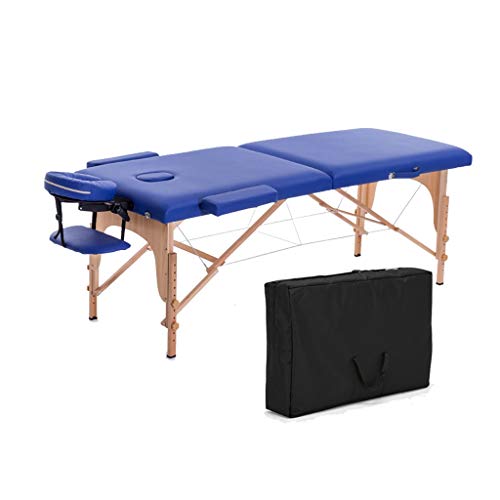 YANSHOU - ترابيزة تدليك قابلة للطي سرير منزلي محمول بإطار خشبي للتدليك طاولة بارتفاع قابل للتعديل أزرق