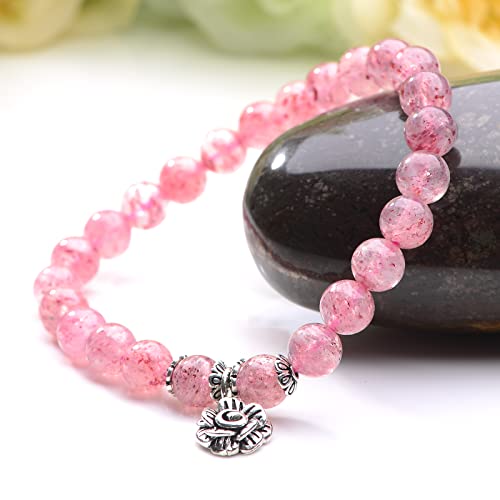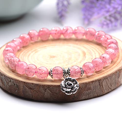 YANYUNZHUBAO - Strawberry Quartz Crystal With 925 Silver Rose Healing For Womens Bracelet 8MM 6.8''