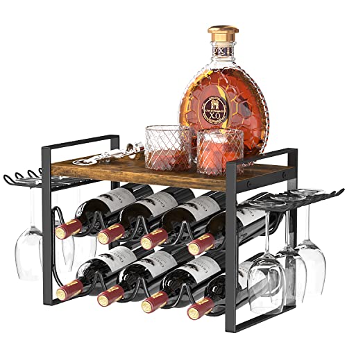 - 【 Good Partner for Daily 】- Saving space,This wine rack is enough to meet daily needs, which can store 8 bottles, 4-6 removable glasses holders, Also make your kitchen tabletop or your home bar organized!