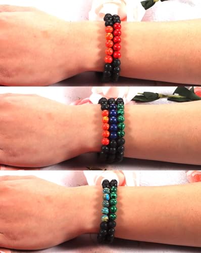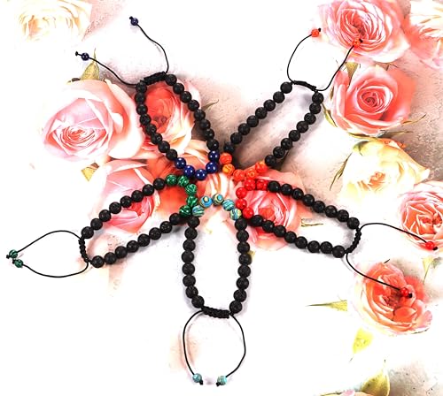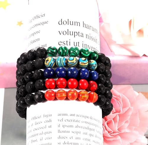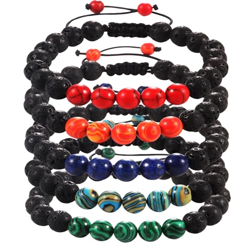 YAQUEYATRUES - 5PCS 8MM Lava Rock Stone Bead Bracelets For Men, Adjustable Tiger Eye Bracelet,volcanized rock Bracelet Mens Jewelry Gifts for Dad Boyfriend Husband Brother