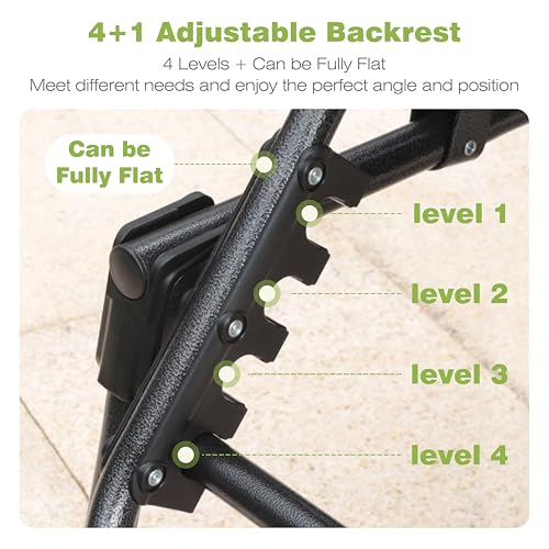 - كرسي استرخاء بخمس أوضاع: تم تصميم كرسي الاسترخاء الخارجي هذا بخمسة مستويات من الظهر القابل للتعديل لتلبية احتياجاتك المختلفة، مما يسمح لك بالإمالة أو الجلوس أو الاستلقاء بشكل مريح وهو مكان مثالي للقراءة أو الاستحمام الشمسي أو القيلولة
