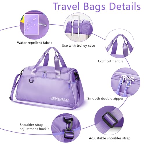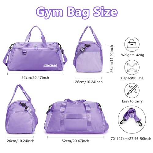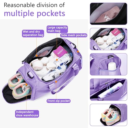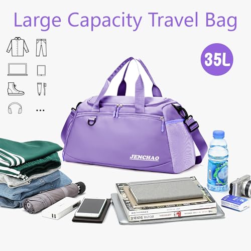 Yarmiene - Women's Travel Bag, 35L Sports Bag Man Sports Bag Foldable Large Travel Bag, Sports Gym Bag with Shoes Compartment and Wet Compartment, Purple