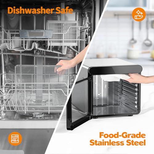- High-quality stainless steel construction of the dehydrators: the robust food grade stainless steel dehydrator has 9 dishwasher-safe trays for easy cleaning. The clear door adds a modern touch and promises lasting style and reliability for your culinary adventures