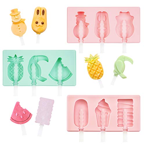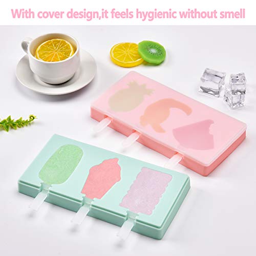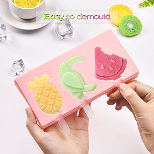 Yastouay - Yastouay 3 Pack Silicone Popsicle Molds Shape, Ice Cream Mold, Popsicle Food Molds, Reusable Popsicle Maker with Lid and Sticks (9 Cavities, Pink and Green)