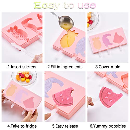 - EASY TO USE & CLEAN: The horizontal homemade popsicle molds can be garnished easily with candy, nut or fruit; cleaning easily after use also. Durable and flexible silicone makes you can hand made healthy popsicle molds for kids repeatedly.
