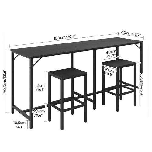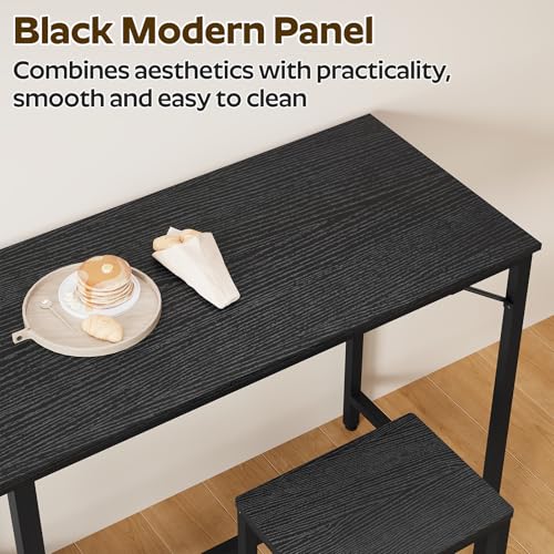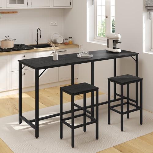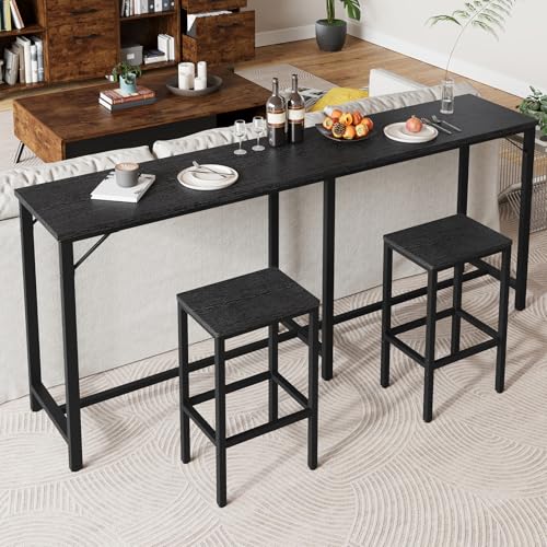 YATINEY - 70.9" Bar Table and Chairs Set, Dining Table and Chair Sets, 3 Piece Counter Height Table and 2 Stools, Kithcen Table for Home Restaurant, Bar, Black BT09BB