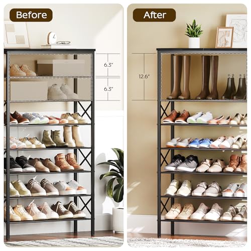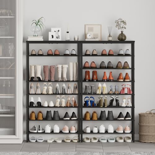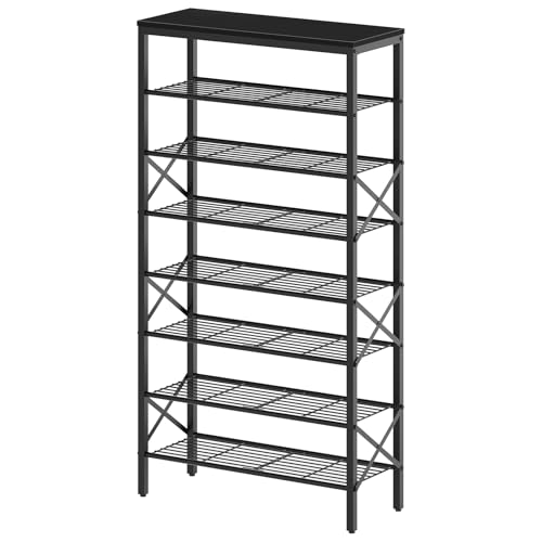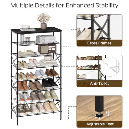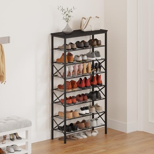 YATINEY - 8 Tier Shoe Rack, Large Capacity Shoe Storage Organizer Holds 32 Pairs, Sturdy and Stable, for Entryway, Hallway, Closet, Dorm Room, Black SS08BB