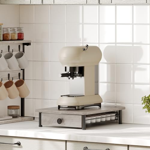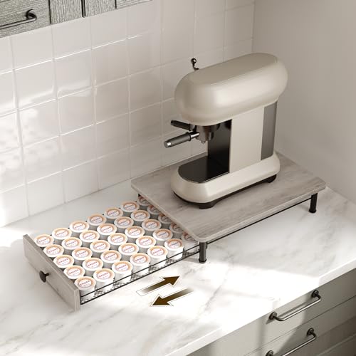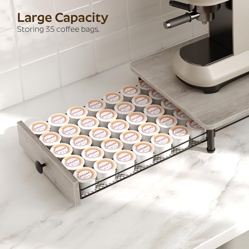 - Good Storage Assistant: The wooden desktop can place coffee machines or coffee cups, and the drawer-type mesh rack with smooth track can store 35 bags of coffee pods. Everything is within reach and your countertop is organized