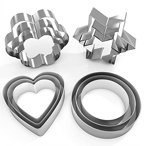 YAWADirect - مجموعة قطاعات الكوكيز، مكونة من 12 قطعة، على شكل قلب ودائرة، من فولاذ مقاوم للصدأ، ولمناسبات الكريسماس والهالويين من ياوا ديركت