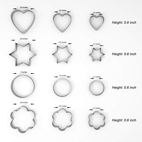 - 4【12 شكل قطاعة مختلفة】حجم صغير - شكل الزهرة: 2.8 بوصة، 2.4 بوصة، 2 بوصة؛ شكل النجمة: 3.1 بوصة، 2.4 بوصة، 1.8 بوصة؛ شكل القلب: 2.2 بوصة، 1.4 بوصة، 1.3 بوصة؛ شكل دائري: 2.1 بوصة، 1.6 بوصة، 1.2 بوصة. ارتفاع: شكل الزهرة: 0.6 بوصة، دائري الشكل 0.6 بوصة، شكل النجمة: 0.6 بوصة، دائري الشكل 0.7 بوصة