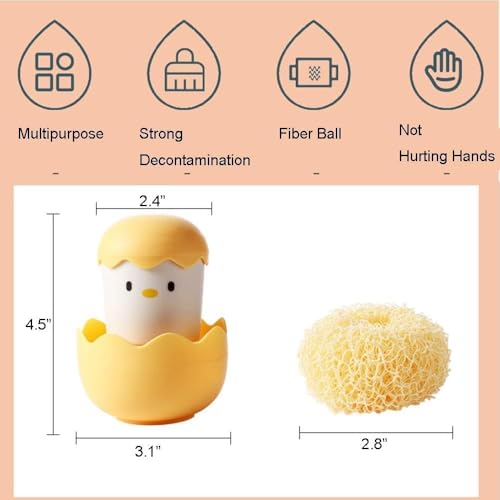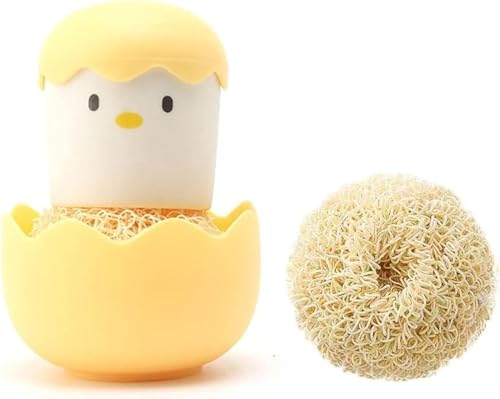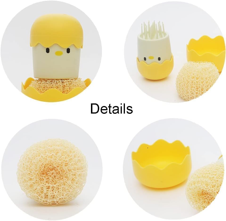Yawtncyw - فرشاة تنظيف بيض الفراخ بمقبض قابل للفصل وكرة من الفايبر بتصميم كرتوين لقشرة بيض وكتكوت من ياوتنسيو، أداة متعددة الأغراض لغسل الأطباق وتنظيف المنزل