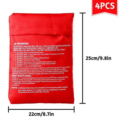 Generic - أكياس طهي البطاطس في الميكروويف، قابلة لإعادة الاستخدام في الميكروويف للبطاطس والذرة والسلطة (25 × 22 سم)، 4 قطع