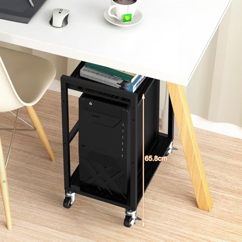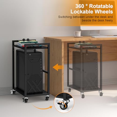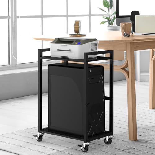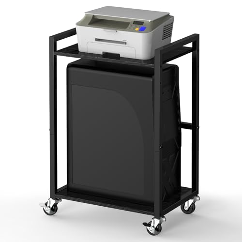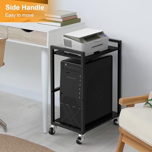 YBING - YBING 2-Tier Computer Tower Stand with Storage, Movable PC Tower Stand, Under Desk CPU Stand Trolley with Lockable Wheels for Home Office,Stand for Printer Fax Scanner Shredder, Black
