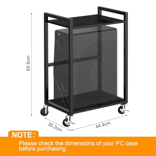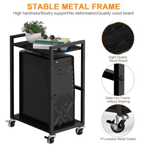 - 【Computer Tower Stand】Great addition to home office, 2 Tier Storage Design and with the free movement of the wooden shelf,provided plenty of room for a printer on the top shelf, PC case stand on the bottom.