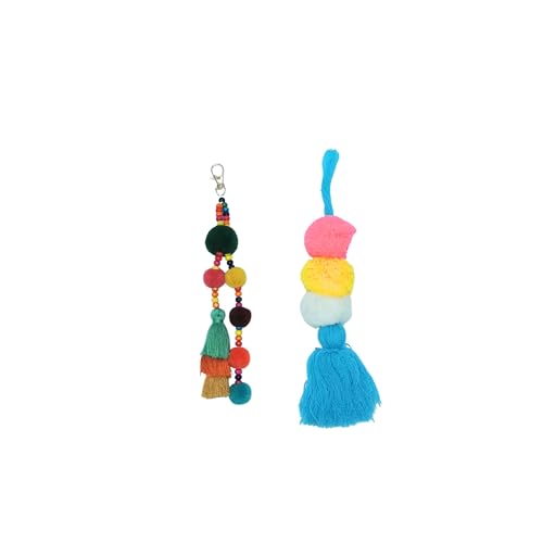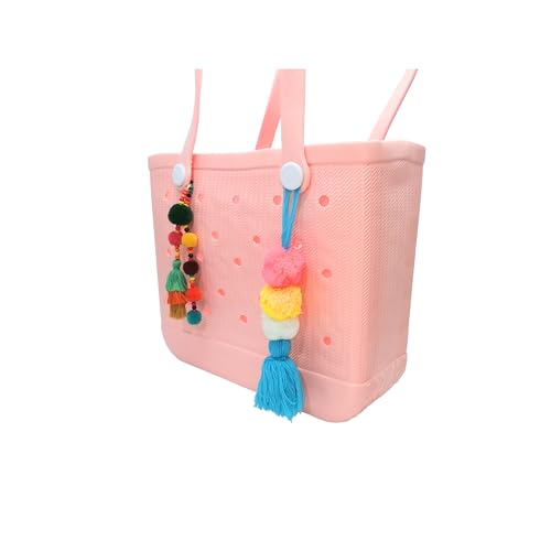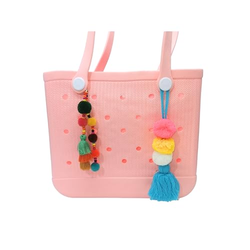 YCeru - دلايات محفظة بوم بوم بشراشيب لاكسسوارات شنطة بوج، سلاسل مفاتيح ملونة بوهيمية، ميدالية مطاطية لشنطة الشاطئ للنساء من واي سيرو، قطعتان (تصميم C)